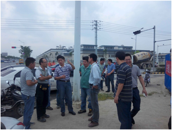 會議分兩階段進行,第一階段查看施工現(xiàn)場作業(yè)面及存在問題,第二階段在會議室聽取可發(fā)科技配套工程相關(guān)項目負責人匯報項目進展情況和需要協(xié)調(diào)的問題,討論相關(guān)協(xié)調(diào)方案及時間節(jié)點。