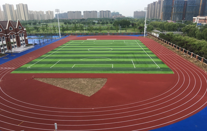 本次體育場地工程主要包括300米塑膠跑道、1個燈光足球場、3片籃球場和3片排球場。 2018年11月,塑膠跑道國家強制性標準《中小學合成材料面層運動場地》GB 36246-2018正式實施,本體育場地項目從前期的規(guī)劃設計,到制定參數(shù),到施工過程中的選材用料和現(xiàn)場施工工藝的把控,嚴格按新國標實施,同時在校方見證下按要求對固體顆粒、膠水、PU等材料現(xiàn)場取樣并送至上海專業(yè)檢測機構進行復測,各項專業(yè)檢測報告均合格。在施工過程中狠抓質量、盡職盡責,確保環(huán)保、安全、精品,目前項目基本完工,取得了較好的觀感效果,同時也將為學校體育教學和體育活動提供了良好的場地條件。