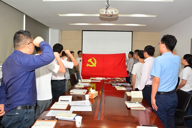 緊接著,開展“四重”活動(dòng)?;顒?dòng)前公司行政人事部專門從園區(qū)檔案室調(diào)取每一名黨員入黨志愿書,將內(nèi)容拍好發(fā)到每人,重溫入黨時(shí)的難忘經(jīng)歷。在劉建華書記的帶領(lǐng)下,右拳高擎,神情莊重,面對(duì)鮮紅的黨旗鄭重宣誓,抒發(fā)對(duì)黨的忠誠(chéng),踐行黨的宗旨,維護(hù)黨的形象和愛黨愛國(guó)情懷。