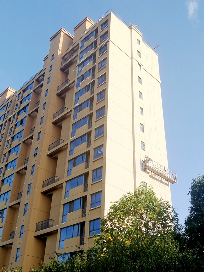 本次出新面積約1.7萬平方米,包含外立面破損修補、外墻鏟除粉刷出新、更換樓宇標(biāo)識等。目前,白領(lǐng)公寓、西楚金地分別完成合同工程量約50%、30%,原本斑駁的外立面一下子變得 “年輕”“靚麗”起來。