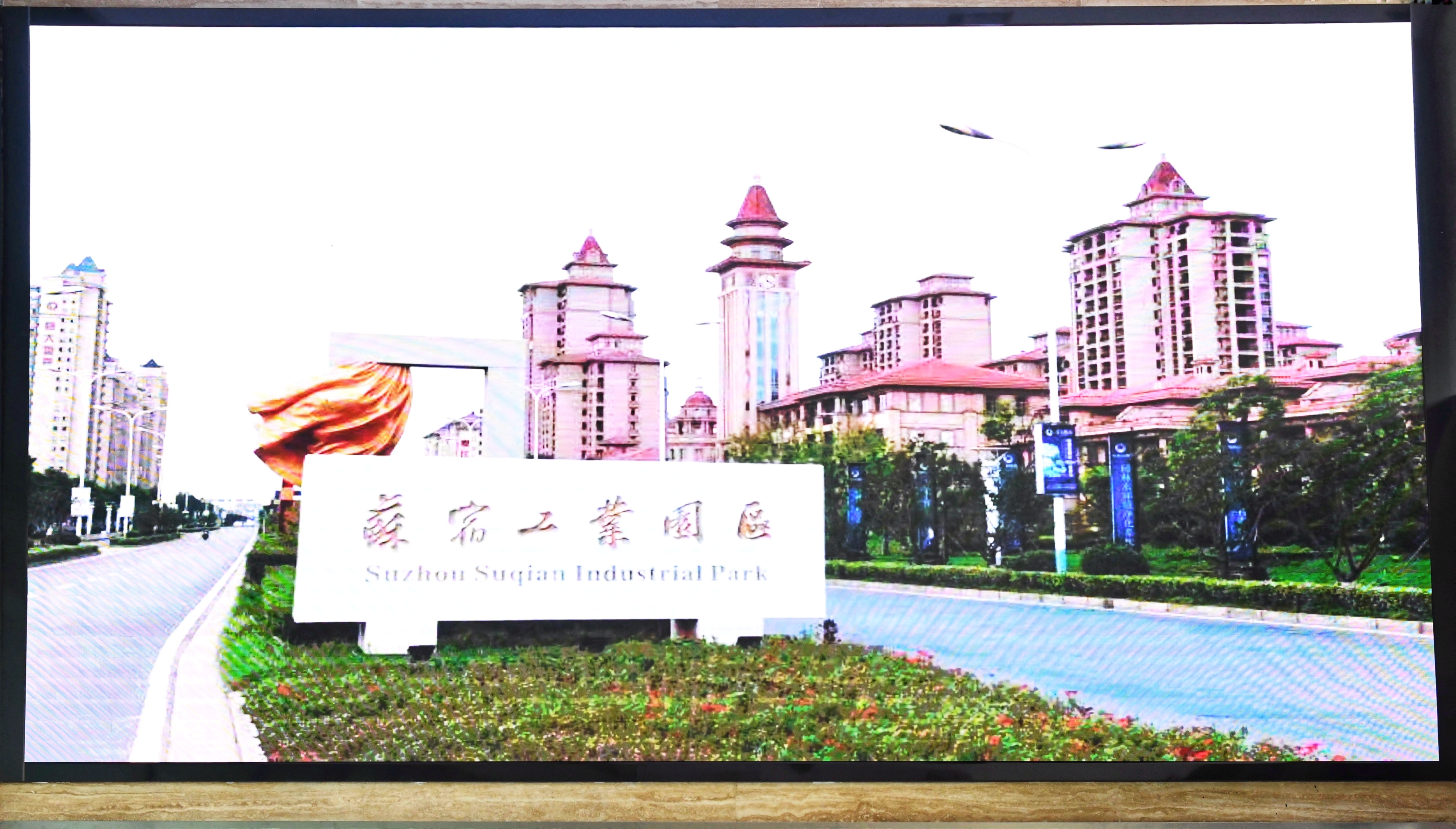 蘇宿管委會一樓大廳顯示屏約15平方米,像素點(diǎn)間距2mm,設(shè)置于大廳中部的二層挑高位置,是管委會對外宣傳的一個重要窗口,新大屏的投入使用,又將成為宣傳園區(qū)的一個新的“助推器”。