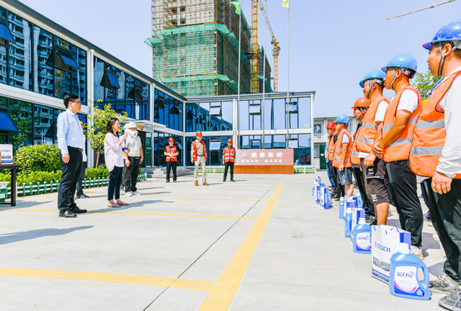 炎炎夏日送清涼,絲絲關(guān)懷暖人心。持續(xù)高溫悶熱天氣,給堅守一線工人帶來了嚴峻“烤”驗,也時刻牽動著公司領(lǐng)導(dǎo)的心。8月10日上午,城發(fā)公司董事長、總經(jīng)理李蘭霞,總經(jīng)理助理陸永軍、張驥一行對公司在建項目一線施工人員和明日鄰里中心物業(yè)人員開展防暑降溫送清涼慰問活動,為奮戰(zhàn)在高溫一線的勞動者們送上一份清涼、一份關(guān)懷。