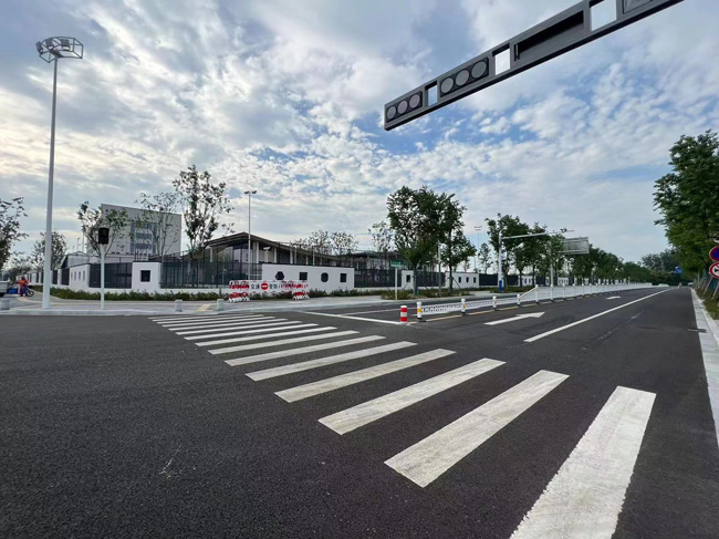 本次工程累計(jì)安裝隔離護(hù)欄1236米,警示柱12套,震蕩標(biāo)線713平米,夜間自發(fā)光三角警示牌19套,停車(chē)場(chǎng)指示牌2套,可拆卸防撞柱10套,臨時(shí)封閉移動(dòng)護(hù)欄100m。
