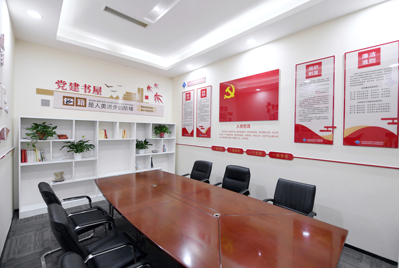 城發(fā)公司黨支部以“規(guī)范、節(jié)儉、實用”為目標(biāo),對原會議室進行了科學(xué)設(shè)計和規(guī)劃,滿足公司黨員職工學(xué)習(xí)、會議需要,并配置書架存放多種類黨建書籍、管理書籍以及日常學(xué)習(xí)活動資料,全方位為黨建工作開展活動創(chuàng)造條件和溫馨的環(huán)境,實現(xiàn)了“一室多用”的效果。