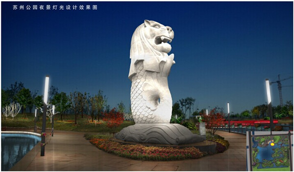 (圖:蘇州公園“魚尾獅”夜景燈光設計效果圖)