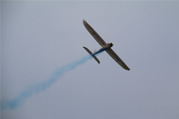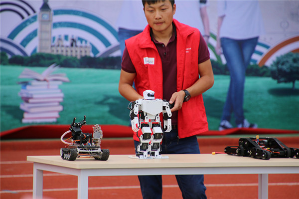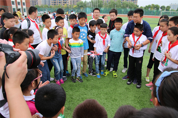 表演中,兩臺(tái)多軸飛機(jī)在場(chǎng)地作繞場(chǎng)及8字飛行,在飛行4分鐘后,隨著背景的高潮音樂響起,在空中打開了橫幅——“共創(chuàng)文明社區(qū),締造幸福家園?!彪S后,無論是機(jī)器人的介紹演示、固定翼無人機(jī)的拉煙表演還是直升機(jī)表演,又或是像真機(jī)空中格斗飛行,都讓同學(xué)們?cè)诨?dòng)和操作中充分感受到了科技的飛速發(fā)展,拓展了視野,更對(duì)航空模型制作產(chǎn)生了濃厚的興趣。