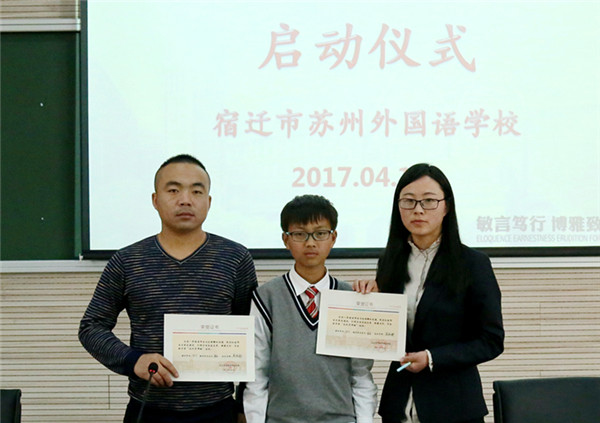 近日,宿遷市蘇州外國語學(xué)校七年級16位孩子和他們的家長監(jiān)護(hù)人還有他們新認(rèn)的“干爹”“干媽”齊聚學(xué)校階梯教室,舉行隆重的簽約儀式。這些“干爹”“干媽”是學(xué)校給首批孩子們配的成長導(dǎo)師,每位教師與一個孩子結(jié)對,全方位關(guān)心孩子的成長,陪伴孩子們一起度過快樂而充實(shí)的初中生活,力求“個個進(jìn)步,人人成星”?!俺砷L導(dǎo)師制”這種親情化、個性化、人本化的育人模式,是宿蘇外實(shí)施素質(zhì)教育,提升教育核心競爭力的需要;是宿蘇外服務(wù)家長,擴(kuò)大教育品牌影響力的需要;是宿蘇外回報社會,落實(shí)“兩聚一高”,建設(shè)和諧社會的需要。